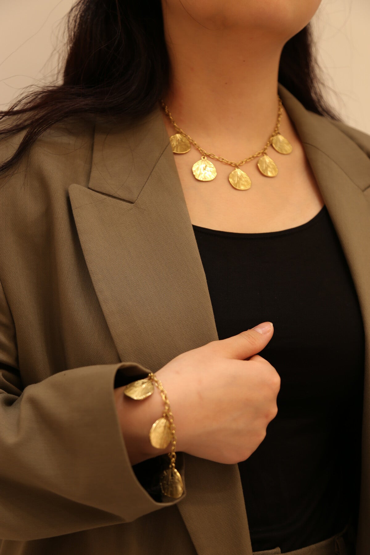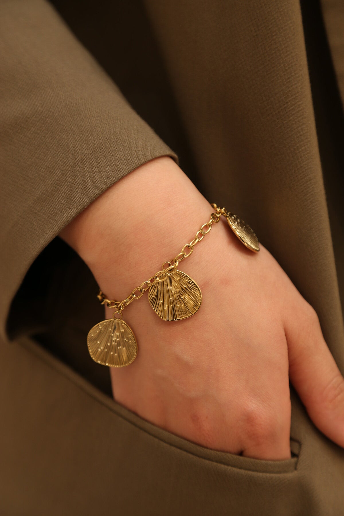Céa est un bracelet délicat composé d’une chaîne fine ponctuée de pendentifs en forme de coquillages, pour une touche chic aux accents marins. Idéal pour illuminer vos tenues estivales, ce bijou ajustable se porte confortablement tout au long de la journée. Associez-le au collier Oréa de la même collection pour un look naturellement harmonieux.